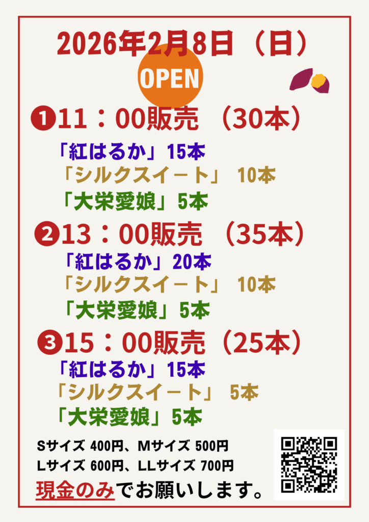 🍠 令和8年2月8日(日)販売『壺焼き芋』のご案内